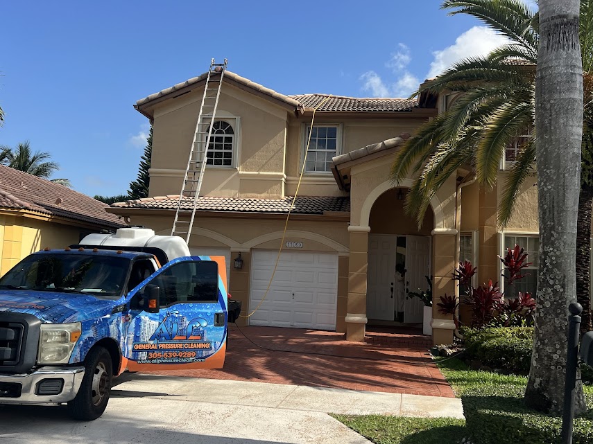 Professional power washing for roofs, parking lots, malls, buildings and condos in Weston